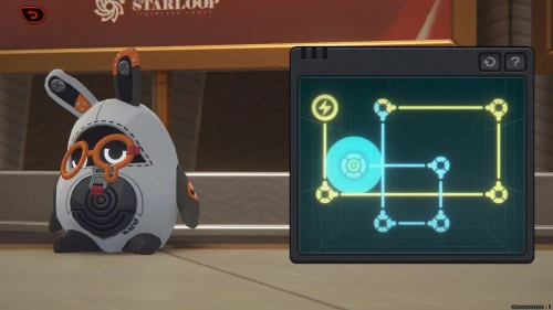 Теперь поболтайте с Красивым банбу справа. Вам необходимо будет решить головоломку с цепями, правильно поворачивая узлы связи. На скриншоте ниже показан правильный вариант. После этого вновь побеседуйте с Николь и Люси для получения Отпускного костюма.