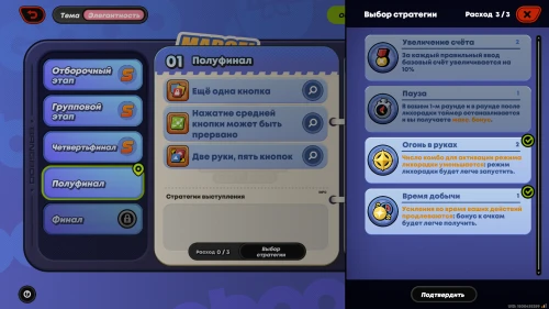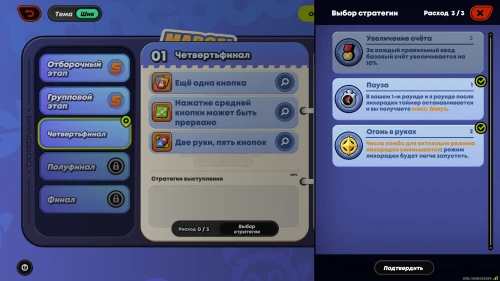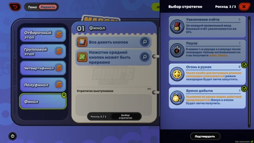 В финальном поединке будут присутствовать все кнопки: синие, оранжевые, зеленые и серые, причем зачастую они будут идти вперемешку, поэтому внимательно следите за экраном и не спешите, чтобы случайно не ошибиться. На виде ниже показано прохождение этапа.