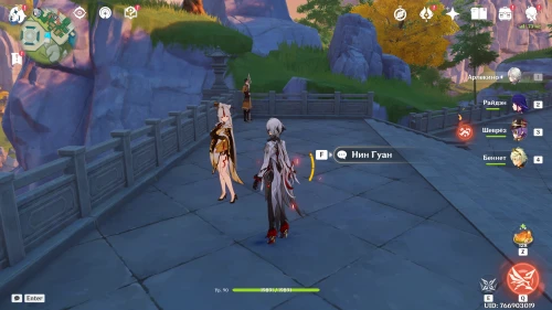 Вновь отправляйтесь на террасу в гавани Ли Юэ и найдите Нин Гуан на небольшой выступающей площадке, где раньше стояла доска с указанием расположения врат. Поболтайте с ней и подарите ей конверт для открытия нового шаблона.