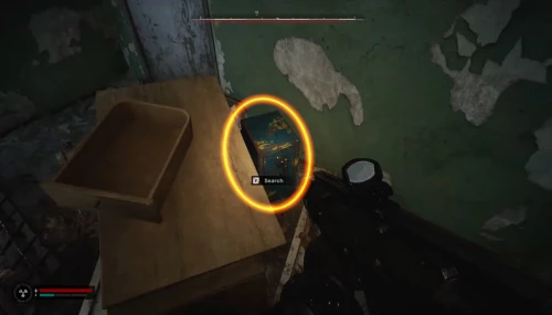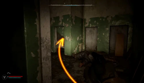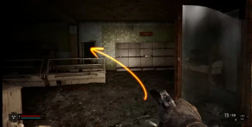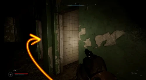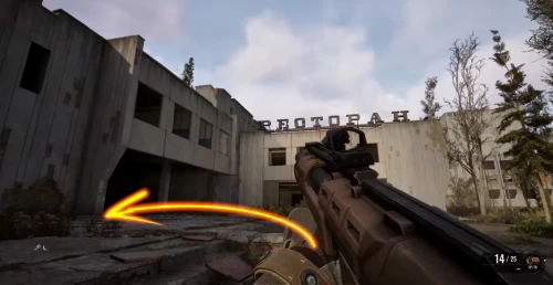 Чтобы отыскать первую флешку с чертежом для улучшения СВУ-МК С-3, доберитесь до локации Магазин «Мясо, рыба, овощи» в Припяти. Войдите через главный вход и бегите за прилавок, как показано на скриншотах.