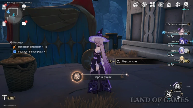 - «Перо в руках» (+5 нефритов) — выдадут после участия в событии с конем и подношением в Омуте судьбы.