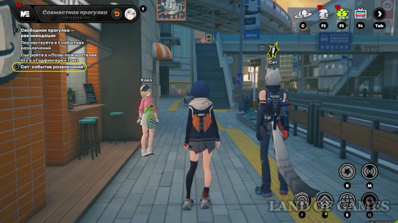Режим «Совместной прогулки» не привязан к приглашениям в чате и может быть запущен неограниченное количество раз. Зайдите в чат с Сетом и кликните по одноименной кнопке, чтобы попасть в отдельное меню. Тут показаны живые обои, снизу есть значок с наградами и действие «Провести время» – жмем и выбираем место встречи (рекомендованное отмечено квестовой меткой). Во время прогулки в предлагаемом игрой месте, вы столкнетесь с такими мероприятиями: