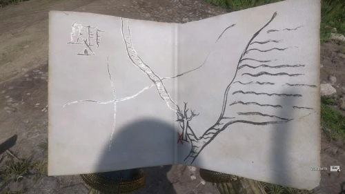 Откройте свою суму, перейдите в раздел «Книги» и отыщите полученную ранее карту. Изучите ее – вы увидите, что крестик указан возле большого дерева рядом с рекой. Если вы не хотите самостоятельно заниматься его поисками, то просто изучите информацию ниже.