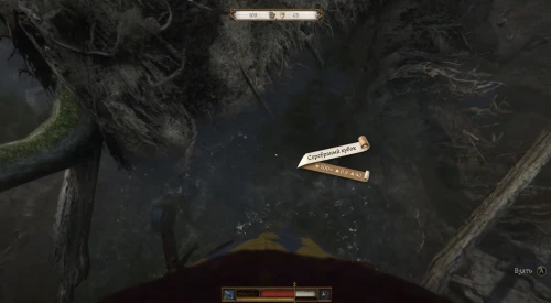 Начните идти в юго-западном направлении вдоль реки, пока не дойдете до небольшого пруда, покрытого водорослями. Войдите в воду и идите в сторону засохших деревьев и буквально через несколько шагов вы обнаружите среди камышей выплывший сундук.