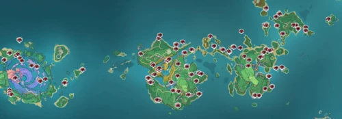 Бутоны, широколисты и спирали добываются в бою с сумрачными мимифлорами. Обитают мимифлоры в Очканатлане, карта с их расположением показана ниже. Напомним, что эти существа могут создавать барьер пустоты, который легче всего разрушить атаками с Благословением Ночного духа, поэтому для быстрого фарма стоит взять в отряд персонажей из Натлана.