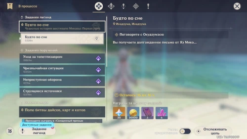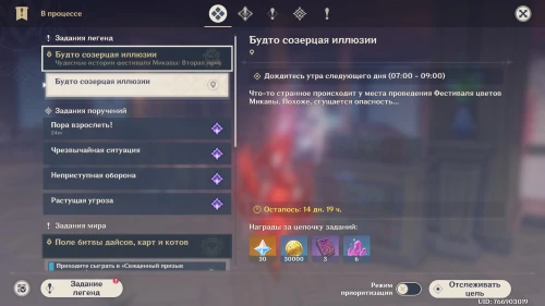 В качестве вознаграждения за прохождение этого квеста вы получите 30 примогемов, 30 тысяч моры, 6 волшебной руды усиления и 3 книги героя.