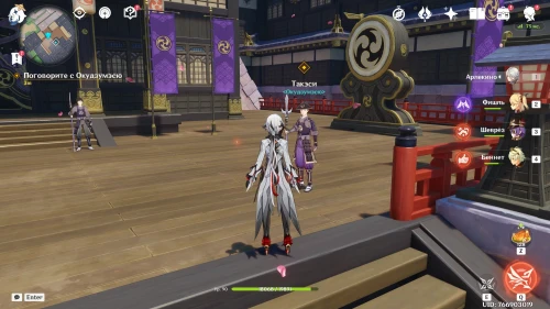 Переместитесь к южному телепорту города Инадзума на острове Наруками, а потом пройдите дальше на юг, поднявшись по лестницам наверх к дворцу. Затем пообщайтесь с Такэси. Вы автоматически пройдете внутрь, где увидите новую кат-сцену с Райдэн и Яэ Мико. Вас попросят стать официальным представителем на фестивале.