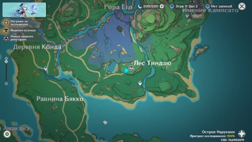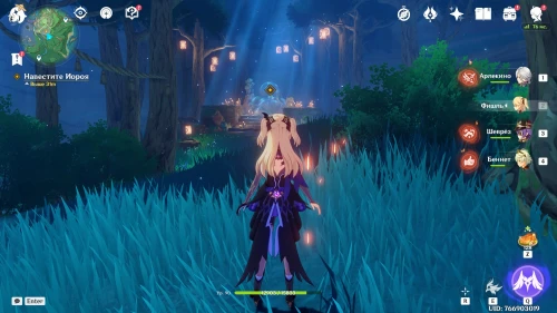 Договорившись, вы автоматом попадете в Лес Тиндзю. Бегите к следующему квестовому маркеру, чтобы навестить Иороя. Яэ Мико сможет убедить его отпустить бакэ-дануки на фестиваль. Снова вернитесь в город вместе с «енотами» и гляньте ролик.