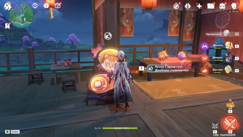 После начала квеста можете пообщаться с друзьями возле их стендов (Кокоми, Саю, Эи, Томой и так далее) или сразу подойти к Аратаки Итто, стоящему чуть дальше вместе с Куки Синобу. Он предложит вам отправиться в бани «Аиса». Снова поговорите с ним и скажите, что готовы идти.
