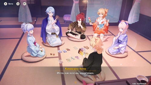 Вы автоматически перенесетесь в баню, где увидите новые анимированные сценки со своими друзьями из Инадзумы. Во время игры с Аято можете выбрать любую тактику, так как она не повлияет на концовку и ваши награды (мы проявили напор и победили). Потом посмотрите еще один небольшой ролик.