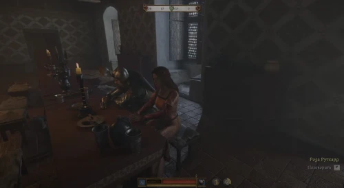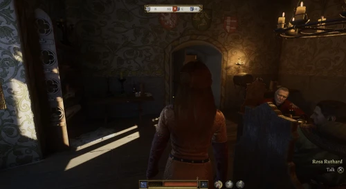 После беседы с панами Рутхард посоветует вам поговорить с Розой, чтобы подробнее узнать о том, как именно воспользоваться тайным проходом в крепость Малешов. Итак, поднимитесь по лестнице на верхний этаж и следуйте за маркером, чтобы пройти в комнату девушки, и побеседуйте с ней (если вы уйдете из замка и придете позднее, то в следующий раз можете встретить ее в обеденной зоне).
