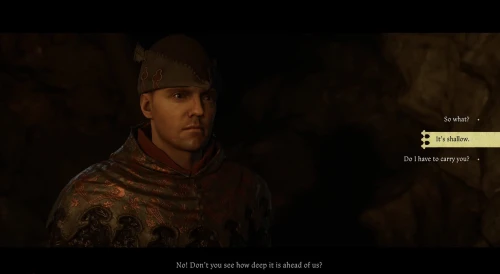 Когда будете идти по темному туннелю в поместье Рутхарда, Роза остановится и скажет, что впереди слишком глубоко – сразу же предложите понести ее, а затем пройдите с ней через область с водой и снова опустите девушку на землю. Выбравшись наружу, заговорите с Розой. Она скажет, что заберется в башню по плющу – согласитесь с ней, однако скажите ей быть осторожной.
