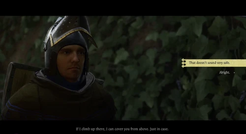 Продолжайте проходить основной сюжет и доберитесь до задания «Танцы с дьяволом». Захватив основную часть крепости Малешов, вы начнете переговоры с паном Бергова, который заперся в башне, однако смог схватить Розу в качестве заложницы. Далее выберите следующие ответы: