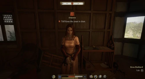 Далее можете поболтать с ней, прежде чем идти в туннели, чтобы расспросить ее о секретном проходе, и получить от нее одежду. В следующий раз вы встретите Розу во время спасения ее отца из плена – поддержите ее и вызовитесь спасти пленных. Когда вызволите заключенных, снова поболтайте с ней.