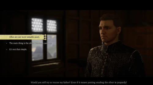 Снова придите повидать пана Рутхарда, который вместе с дочкой будет беседовать с важным гостем. Советуем вам выбрать ответ «(слушать дальше)», чтобы повысить Ученость. Далее скажите для повышения репутации: «У меня твое кольцо» > «Выслушать Кунцлина» > «Ты тайно управлял монетным двором» > «Любой ответ на проверку навыков».