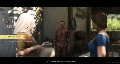 , а затем помойтесь в бадье и снова заговорите с Катериной, которая начнет отрицать, что видела вас на озере. Не выбирайте ответ на проверку Красноречия, если у вас ниже 7 единиц данного параметра, так как вы лишитесь репутации. Если же у вас больше 8 единиц, и вы починили свою одежду и выпили пиво, то можете выбрать ответ на Убеждение, чтобы повысить репутацию с девушкой.