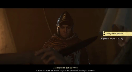 Далее возвратитесь к Липольду и составьте план того, как схватить убийц. Когда разберетесь с Тадеушом, спуститесь вниз к Манделине фон Гролле. Ваша подруга захочет лично разобраться с убийцей. Если вы хотите улучшить репутацию с Катериной, то выберите следующие ответы:
