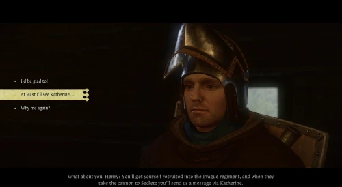 В первый раз вы сможете выбрать ответ со значком «сердечка» при разговоре с Катериной в рамках сюжетной миссии под названием «Ограбление по-влашски». Однако данный момент тоже очень легко пропустить. Итак, после завершения ключевых задач квеста, то есть получения доступа к монетному двору и освобождения пленников, вам посоветуют поговорить с Яном Жижкой. Однако пока что делать этого не стоит.