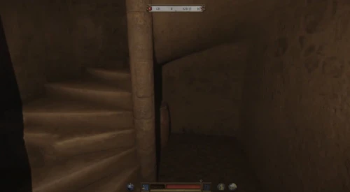 Отправляйтесь во двор и найдите помещение, где чеканятся монеты (восточная сторона), а справа от нее вы обнаружите переулок с мертвым солдатом, прислонившимся к стене, – пройдите вперед и зайдите в башню, а затем поднимитесь наверх по винтовой лестнице на второй этаж. Здесь вы обнаружите Катерину.