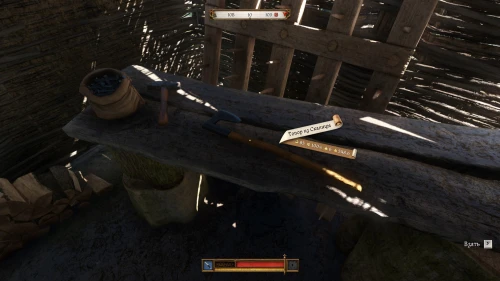 Его можно отыскать в Тросковице – первом поселении, куда вы попадете после пролога. Пройдите в юго-западную часть деревушки и пройдите в небольшой сарай. Здесь на столе вы обнаружите бесхозный топор. Можете смело забирать его, так как это не посчитают воровством. Он обладает весьма неплохим уроном, однако требует немало Силы. Плюс, его Защита довольно слабая, так что рекомендуется использовать этот топорик со щитом.