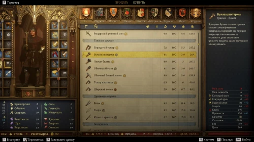 - Булавы и дубины – эффективны против тяжелой брони, так как наносят преимущественно ударный урон. Однако они практически не имеют колющего и режущего урона, поэтому не так хороши в битвах с небронированными целями.