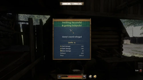 Вот только заполучить его удастся лишь в самом конце игры. Когда Мартин и ваша мать спросят вас, какую жизнь вы ищите, то скажите, что жаждите приключений или хотите стать воином. В этом случае Радциг Кобыла подарит свой меч Индро, и он будет переименован в Меч Индржиха. После этого вы сможете тут же перековать его, использовав Толедскую сталь и добиться четвертого уровня качества. Сохранитесь перед ковкой, чтобы в случае чего переделать клинок.