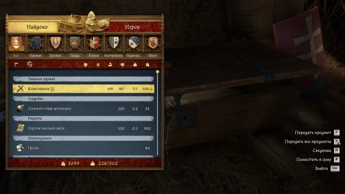 Плюс, вы можете приобрести чертеж (вы также можете достать его из того же сундука, что и Клюв Ворона, рассмотренный ниже) или саму Панскую саблю у одного из двух оружейников Кутна-Горы. Напомним, что их ассортимент обновляется раз в 7 игровых дней, поэтому не забывайте регулярно посещать их, чтобы найти интересующее вас вооружение.