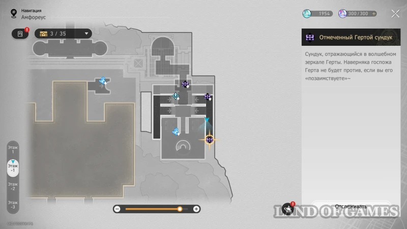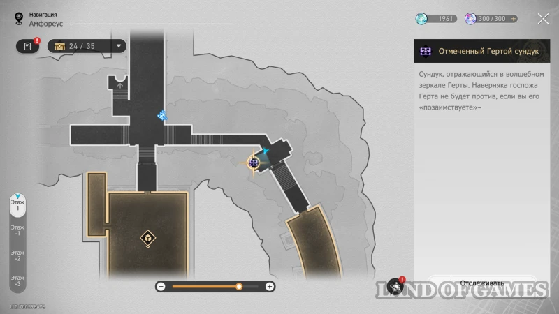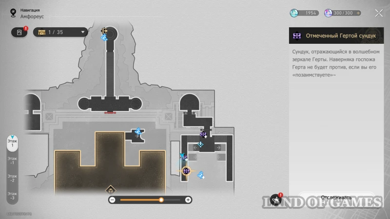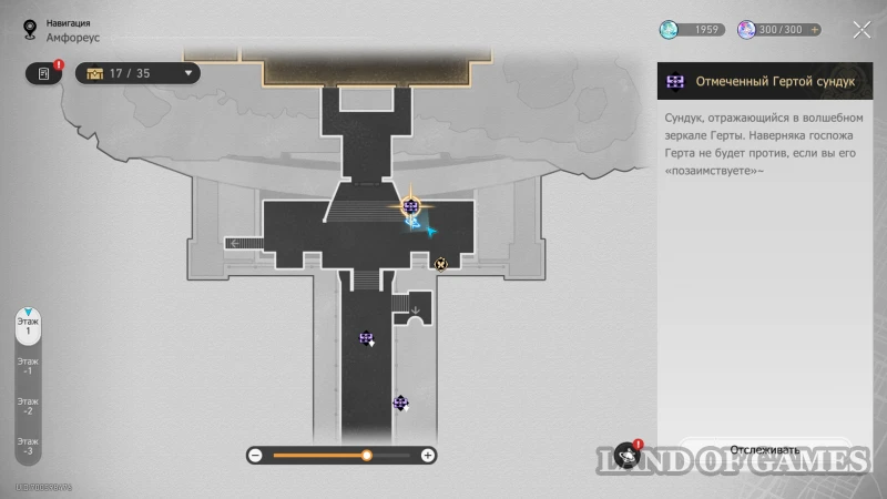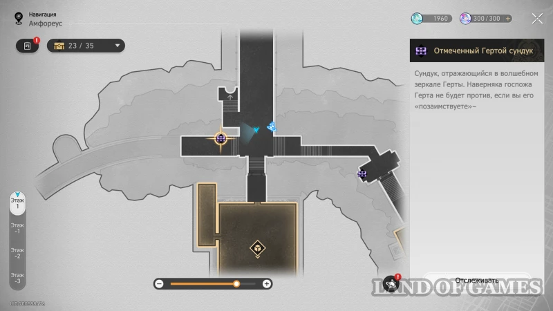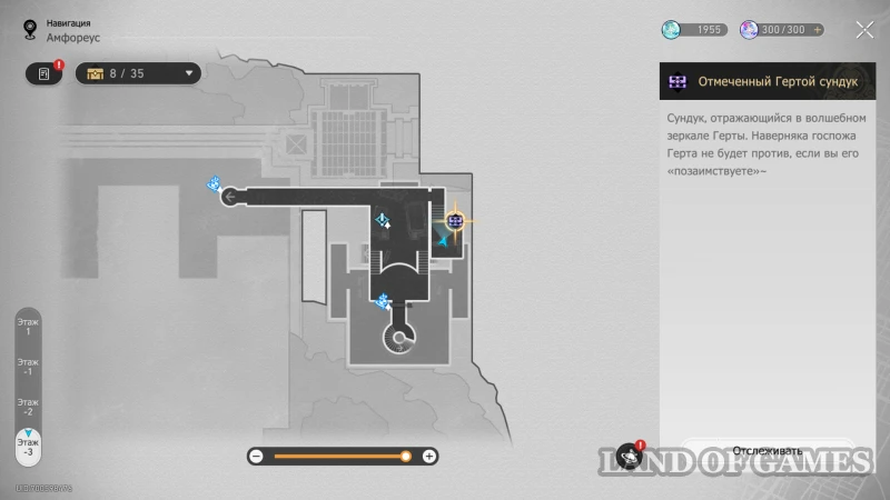 Эта локация состоит из нескольких уровней, в которых можно отыскать 41 обычный, ценный и роскошный сундуки (часть из них выдаются за решение загадок, и еще несколько — за игру с вращающимся лабиринтом). На картах ниже можно посмотреть их примерное расположение: