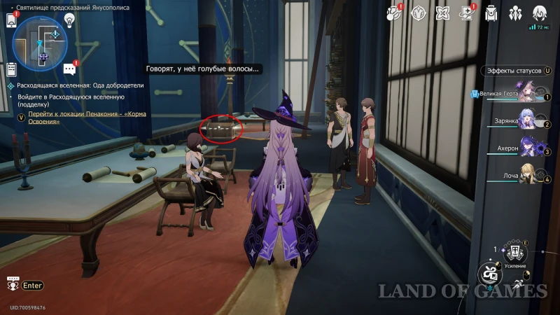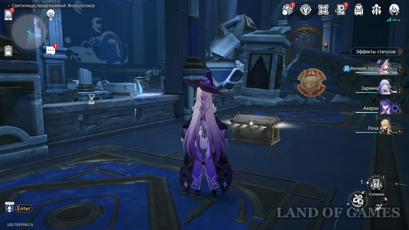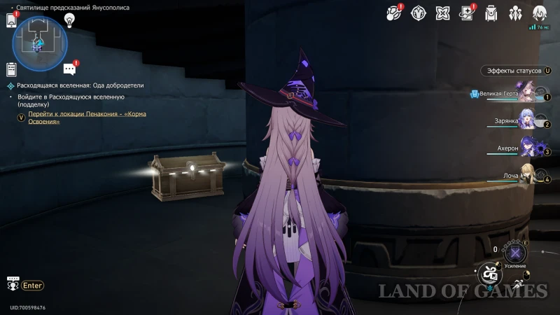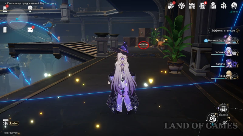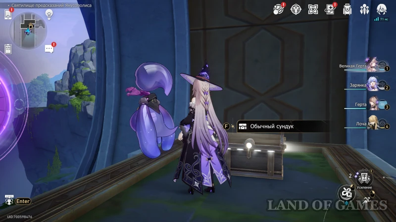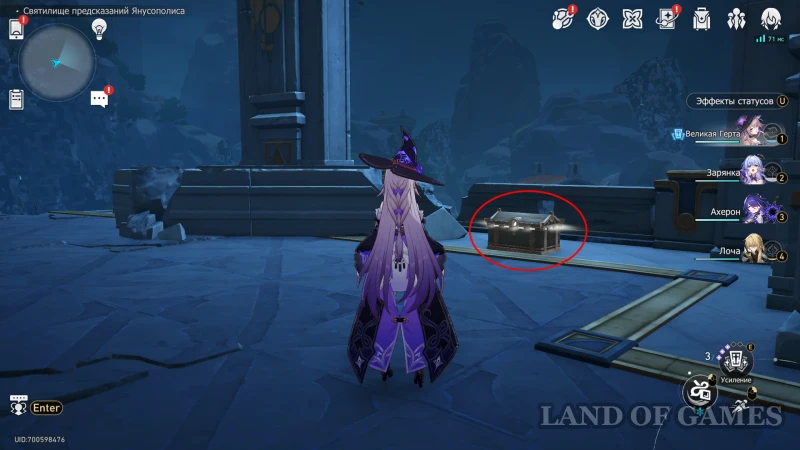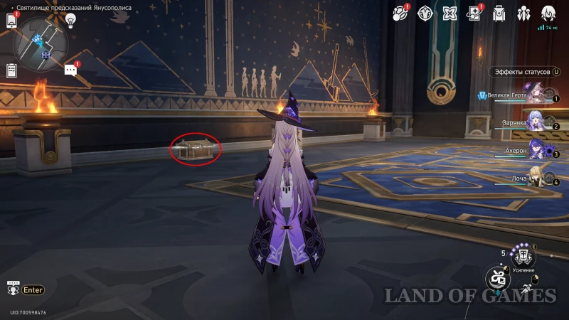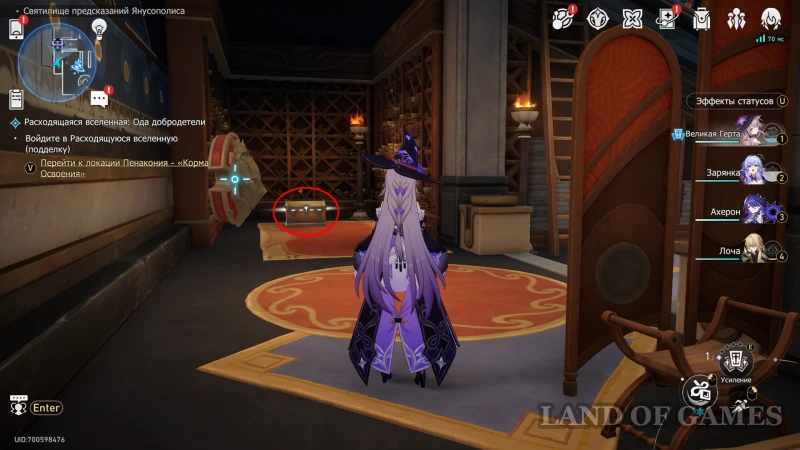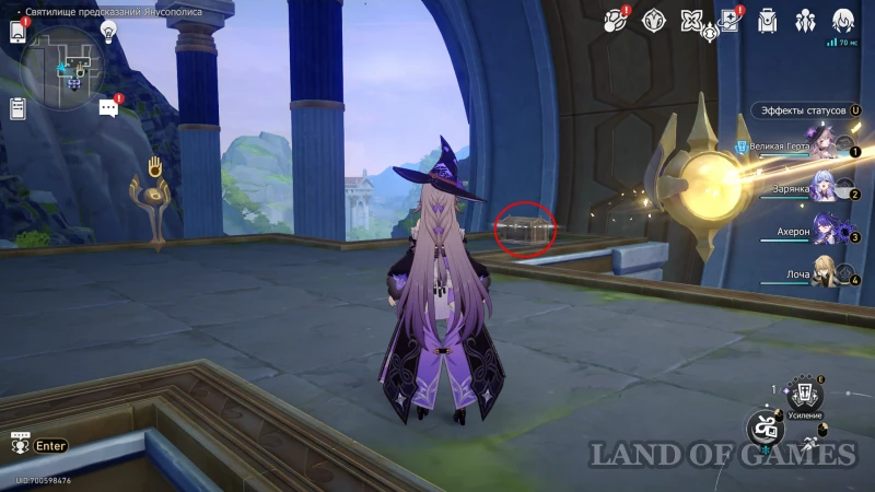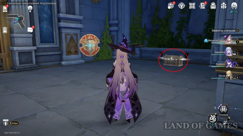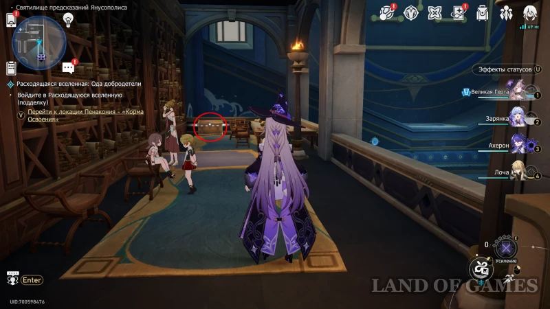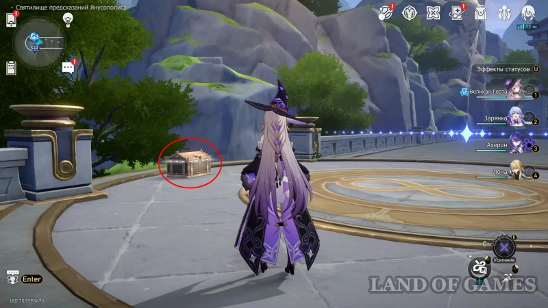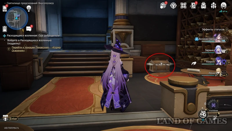 Переместитесь в Библиотеку пророчества и поднимитесь к балкончику на западном крыле в верхней половине помещения (1 этаж): сундучок будет ждать напротив стеллажа со свитками. Как только попытаетесь забрать награду, появится дух-воришка (в отдельном материале рассказываем, как его изловить) – предотвратите кражу и верните ларец, а также получите вознаграждение за разговор с Бартолосом (40 нефрита и 60 амброзии).