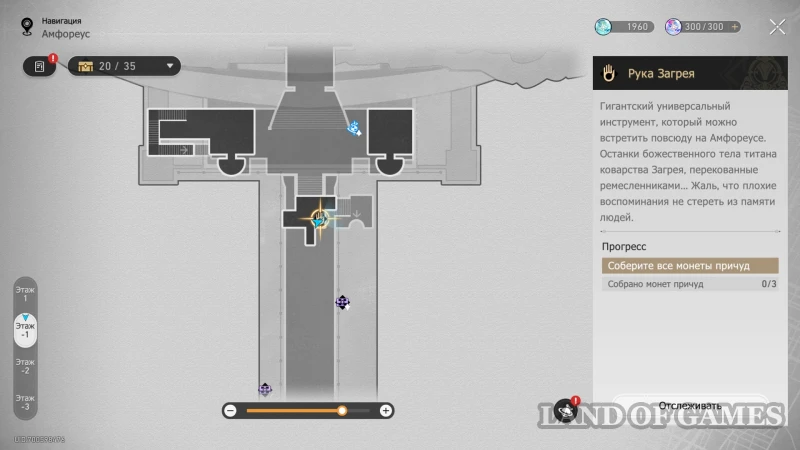 Ценная награда за поиск монеток появится под мостом на -2 этаже (переместитесь к «Вратам судьбы», спуститесь к мосту и сразу поверните влево – тут находится круглый лифт, отмеченный на карте маленькой стрелкой).