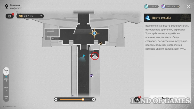 Переместившись к «Вратам судьбы», спускайтесь по лестнице на запад: в комнате на -1 этаже найдете плиту, после решения которой (подсказка на скриншоте выше) появится ценная сокровищница.