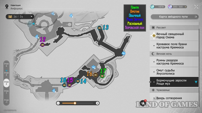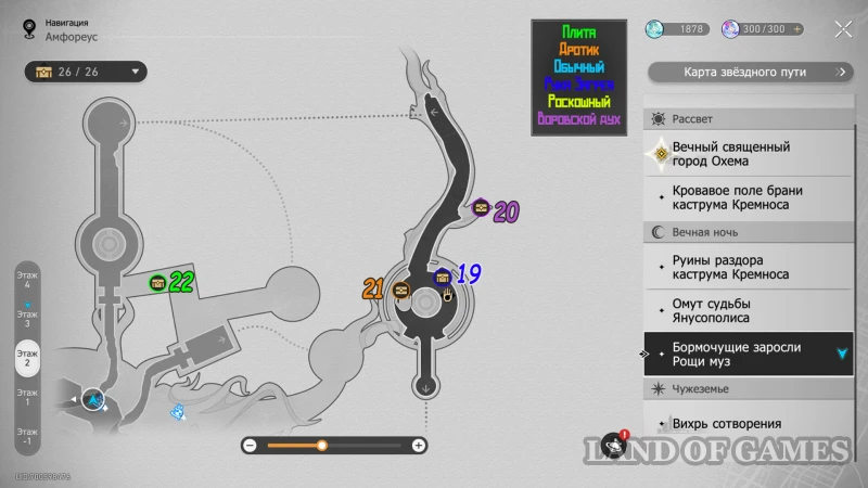 Эта локация состоит из нескольких уровней, в которых можно отыскать 30 обычных, ценных и роскошных сундуков (некоторые из них выдаются за решение загадок). На картах ниже можно будет изучить их примерное расположение: