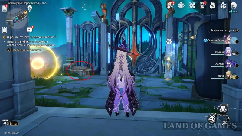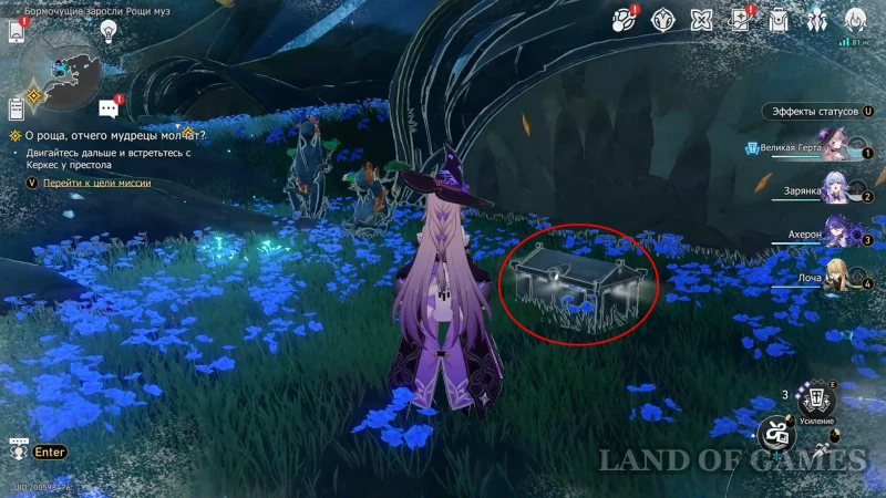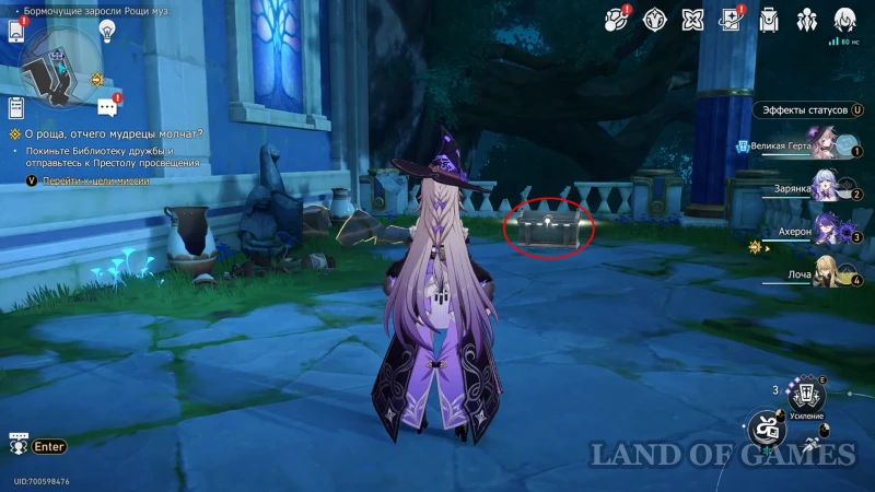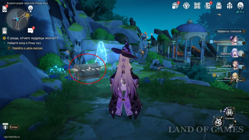 Где найти сундуки в Бормочущих зарослях Рощи муз