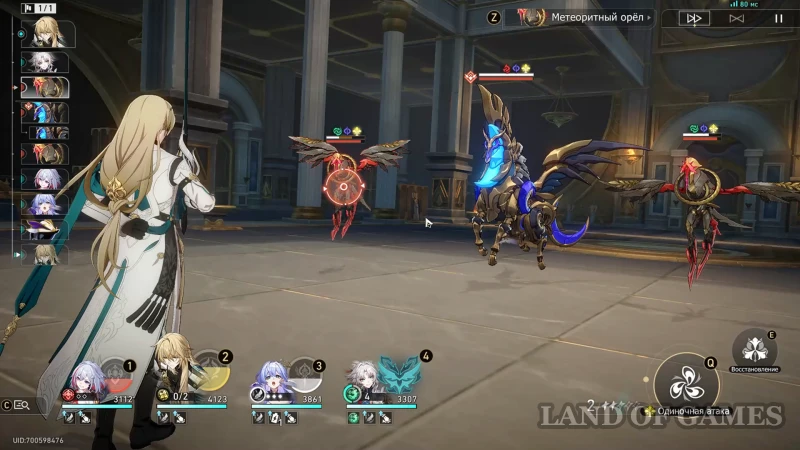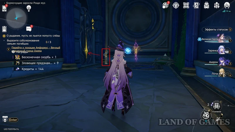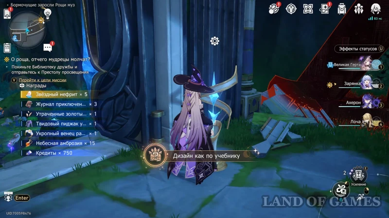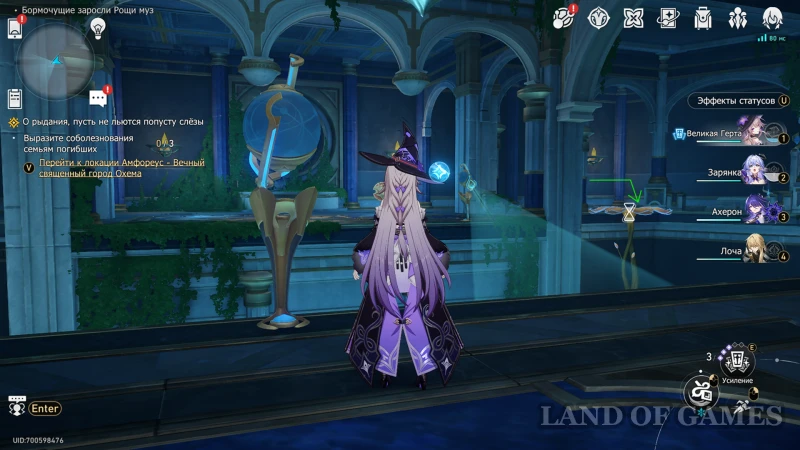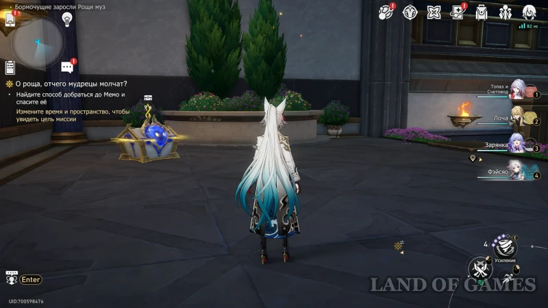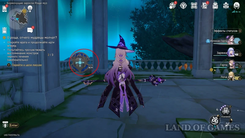 Собрав предыдущую награду, переключитесь на Рассвет с помощью книжки чудес на втором этаже, а после возвращайтесь к дальнему прожектору. Недалеко от него находится испытание с сильным противником (помечено на карте): битва против механического пегаса, в которой вам стоит брать героев мнимого, квантового, ветряного и огненного элементов. После сражения вы сможете залутать награду из роскошного ларца.
