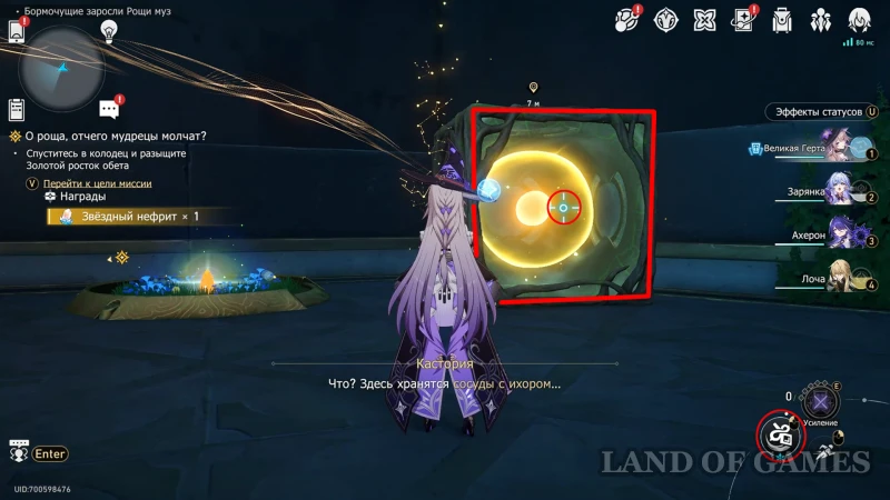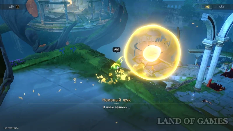 Подойдите к кубу с золотым ядром и наблюдайте, как его крадет еще один воришка. Предотвратите побег и поговорите с беглецом (о том, как поступать с Воровскими духами, рассказали в отдельном материале), получив за это 40 нефрита и 60 небесной амброзии. Затем обязательно пробейте стенку куба, чтобы шарик покатился направо и придавил зеленого жучка (упав, ихор разломает ящики, заслоняющие 18-й сундучок).