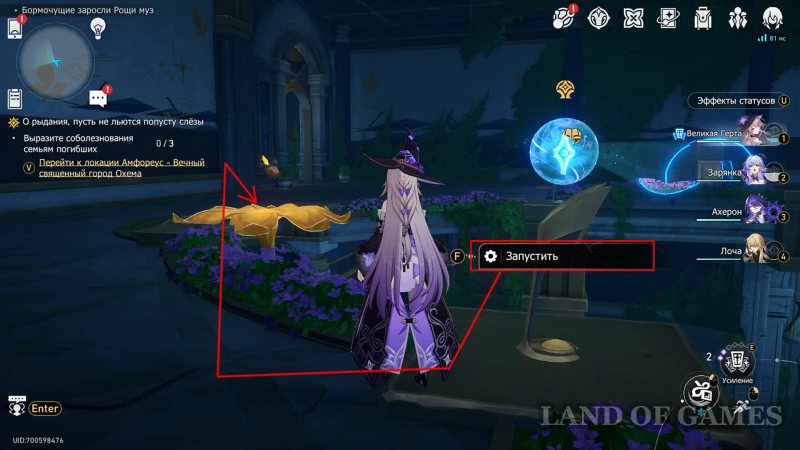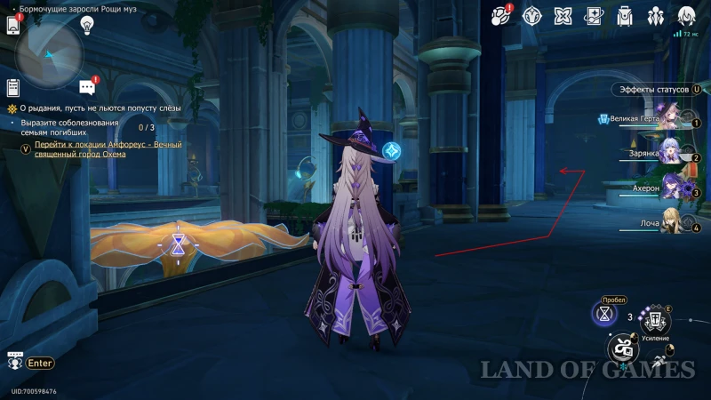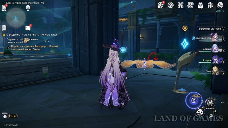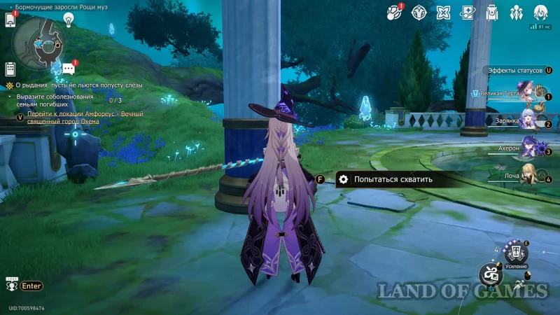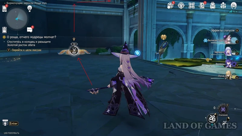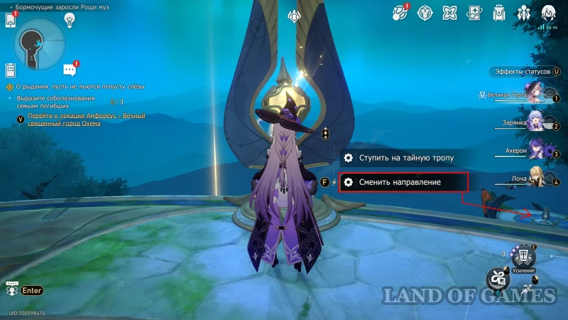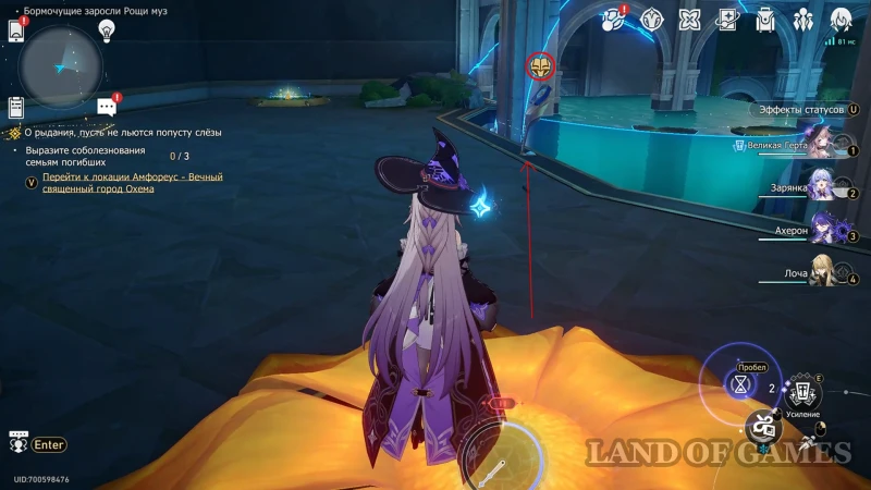 - Использовать киот для усиления молитвы, а затем встать на цветок (когницвет) и зажать пробел для осуществления спуска;