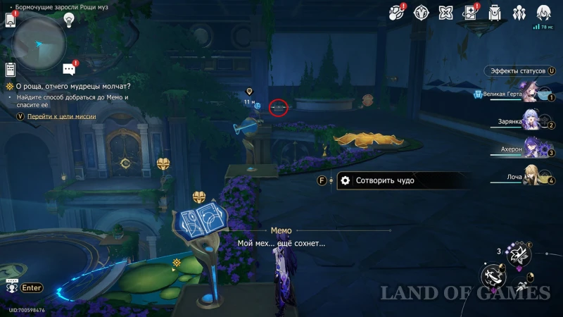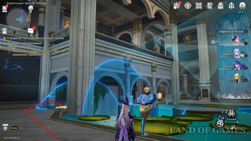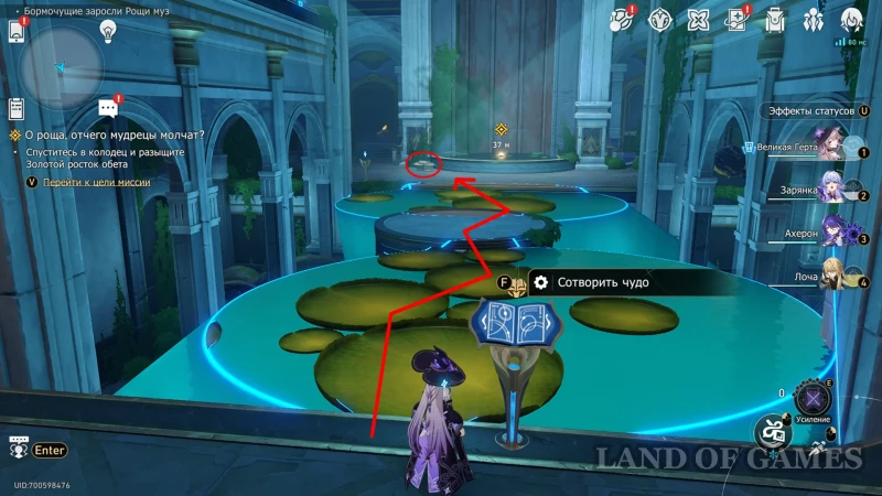 - Вернуть локацию в Вечную ночь через книжку перед прудом и перейти по кувшинкам в центр искусственного водоема.