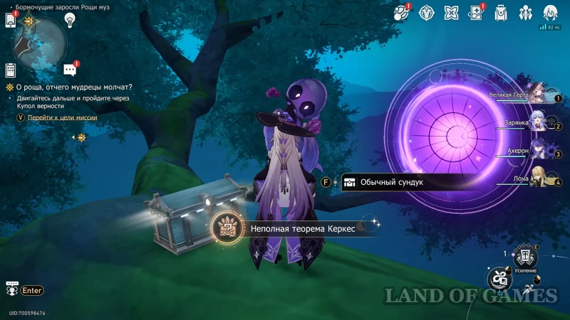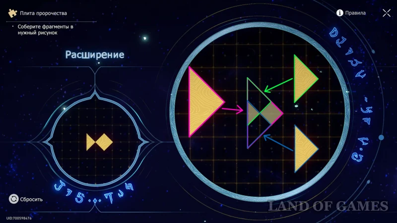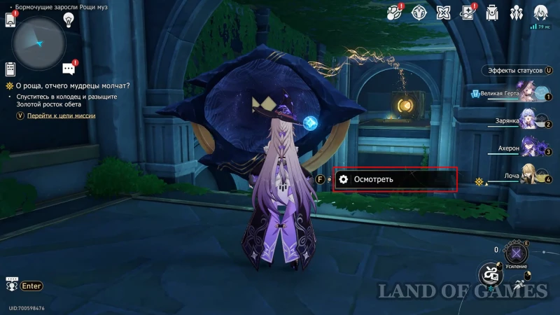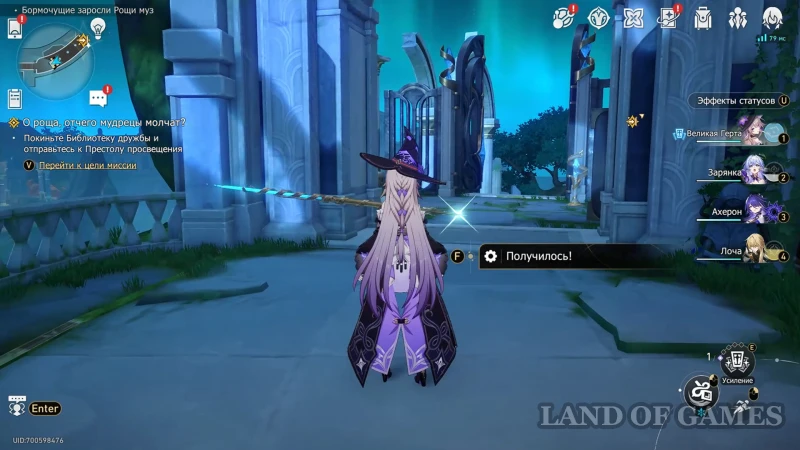 От предыдущей награды возвращайтесь к данжу с элитным боссом «Форма ледяной луны» и, не доходя до него, сверните вправо – в коридоре будет несколько врагов, а за поворотом очередная плита пророчества. Используйте подсказку «Сбор урожая» на скриншоте выше, а когда все части рисунка будут на местах, поднимайтесь по корням дерева на второй этаж, по пути собрав ценный ларец.