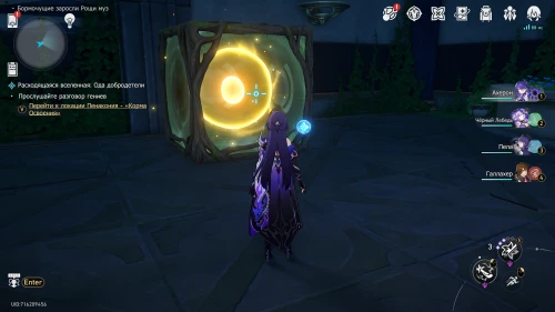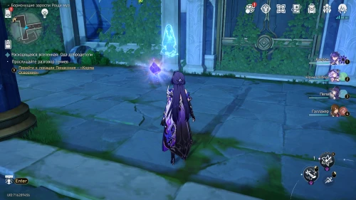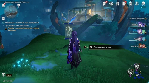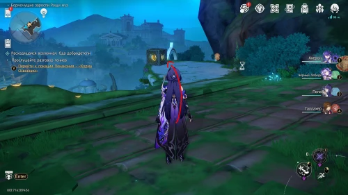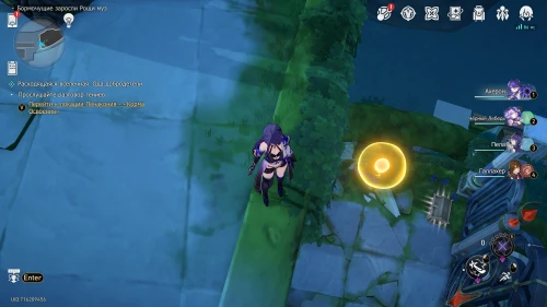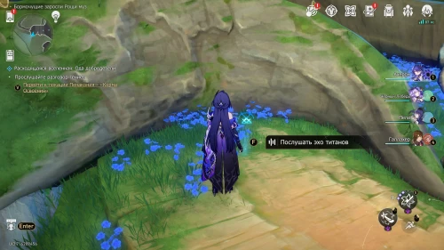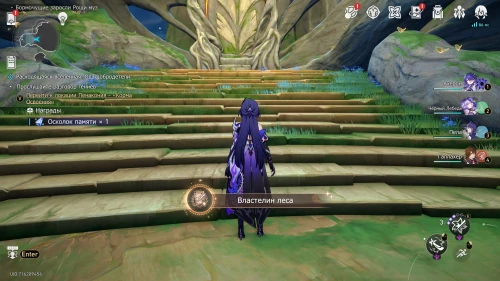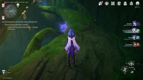 Мерцающая тень – Обнаружьте все фрагменты воспоминаний Бормочущих зарослей Рощи муз. Всего их 4 штуки, и они продемонстрированы на скриншотах ниже. Отметим, что нужно не только взаимодействовать с фиолетовыми кристаллами, но и послушать воспоминания.