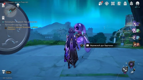 Вам необходимо будет поймать воровского духа, используя молитву Оронис (нажимайте клавишу «Пробел» и отпускайте ее на зеленых участках шкалы). Поймав Бартолоса, поболтайте с ним – выбирайте любые ответы, так как он в любом случае вернет куб на место.