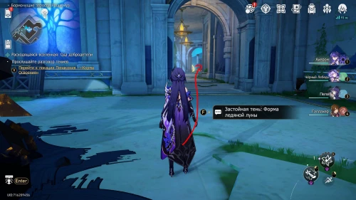 Теперь переместитесь к застойной тени «Форма ледяной луны» на 1-м этаже и пройдите на юго-запад к воротам. Взаимодействуйте с механизмом справа, чтобы открыть решетку и получить достижение.