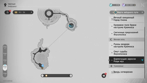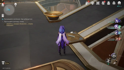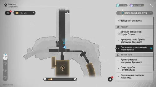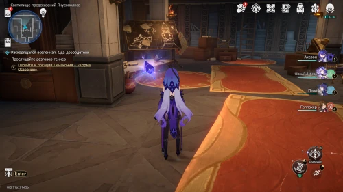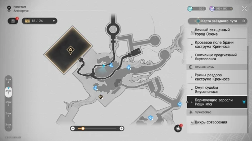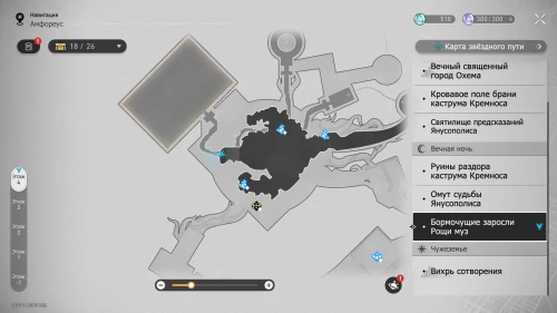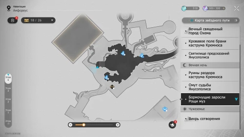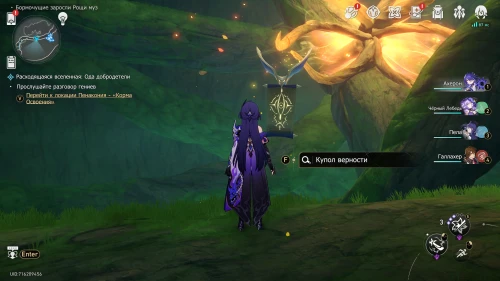 Вера семечки – Разбейте ящики на дне, используя когносемя, во время исследования Звездного дворика в Бормочущих зарослях Рощи муз. Телепортируйтесь к якорю «Купол верности» на третьем уровне указанной области, а затем двигайтесь на запад к входу в просторное помещение с трехмерной картой. Войдите внутрь.