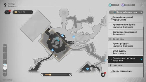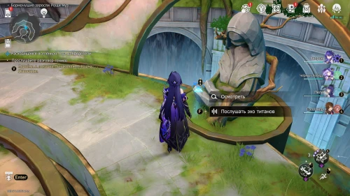 Бесконечные цветы и священные листья – Получите аудиозапись «Отголосок божественности: Разум». Телепортируйтесь к якорю «Престол просвещения» на 4-м этаже Бормочущих зарослей Рощи муз, а затем пройдите на запад к трону, и слева от него отыщите руну. Выберите опцию «Послушать эхо титанов» для открытия трофея.