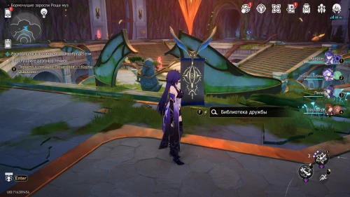 Празднества любы ночные тебе – Получите аудиозапись «Отголосок божественности: Романтика». Телепортируйтесь к якорю «Библиотека дружбы» на 1-м этаже Бормочущих зарослей Рощи муз, а затем пройдите к статуе внизу на севере и отыщите синюю руну возле нее. Выберите опцию «Послушать эхо титанов» для открытия трофея.