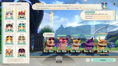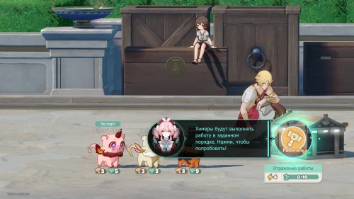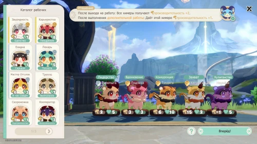 Вам нужно просто следовать инструкциям на экране. Вы узнаете про прогресс работы, а также про производительность, выносливость и особенности зверьков. Продолжайте нажимать кнопку «Работать», пока все химеры не исчезнут. Сундук открыть в любом случае не удастся. Затем расположите химер следующим образом: Лодырь, Тертый Калач и Токсик.