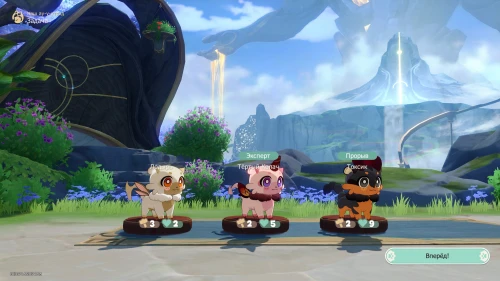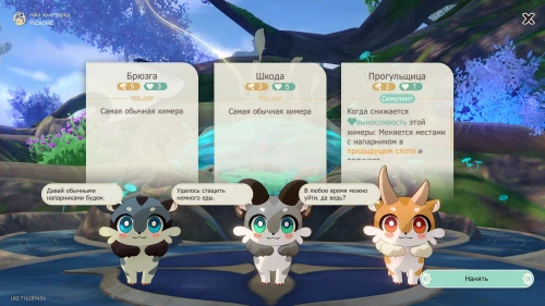 Взаимодействуйте с центром управления химерами (бирюзовая сфера), а затем нажмите на кнопку «Приступить к работе» для начала первых испытаний. Затем наймите новых зверьков: Брюзгу, Шкоду и Прогульщицу.