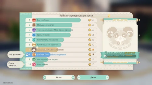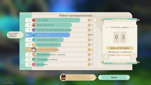 Таким образом, вы сможете досрочно выполнить основную цель и оказаться на 4-м месте в общем рейтинге производительности. Далее вам нужно будет ответить на вопрос Гиацины – можете выбирать любые ответы, так как они ни на что не влияют.