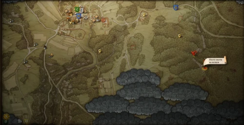 Изучив карту, можно выяснить, что она показывает на тот же лес, где находится недостроенная избушка. Отправляйтесь на юг от этого ориентира, пока не достигнете местности, где водятся волки.