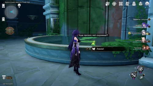 Оказавшись в большом зале, поверните налево и подойдите к небольшому пруду с кувшинками, где нимфа охотится за сокровищами.