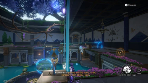 Поднимитесь на второй этаж того же зала. Перед активацией книги чудес перебегите на другую сторону этажа и направьте луч сферы чудес на тропинку из кувшинок.